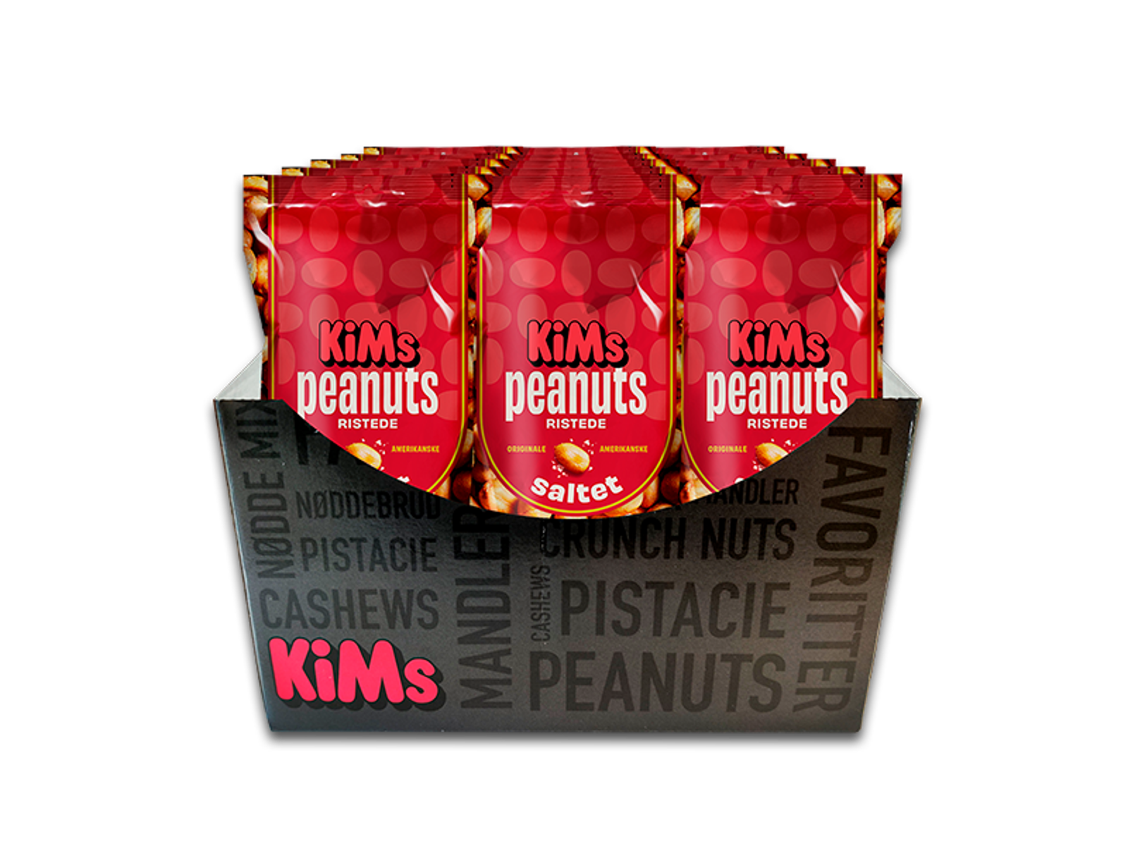 KiMs Saltede Peanuts er fyldt med peanuts fra USA. Det er nemlig nogle af verdens bedste peanuts. Så er de også blåstemplet af American Peanut Counsil, som garanterer, at kvaliteten og smagen er tip top. KiMs Peanuts har et karakteristisk knas og en lækker rund nøddesmag.